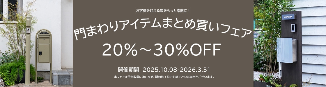 門まわりアイテム3点セットキャンペーン - 20%オフ|26/3/31納品分まで有効|機能門柱×郵便ポスト×ネームプレート|メリピラリ&ソポ×ボビ×ベルクミラー ¥221,760 (税込)
