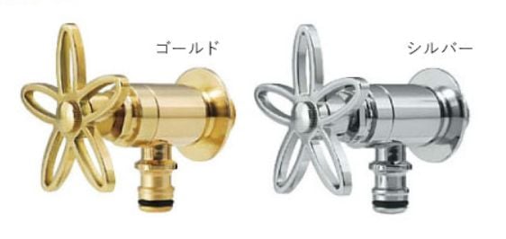 【蛇口】スミレハンドル ホース接続水栓 ゴールド&シルバー ¥8,580(税込)