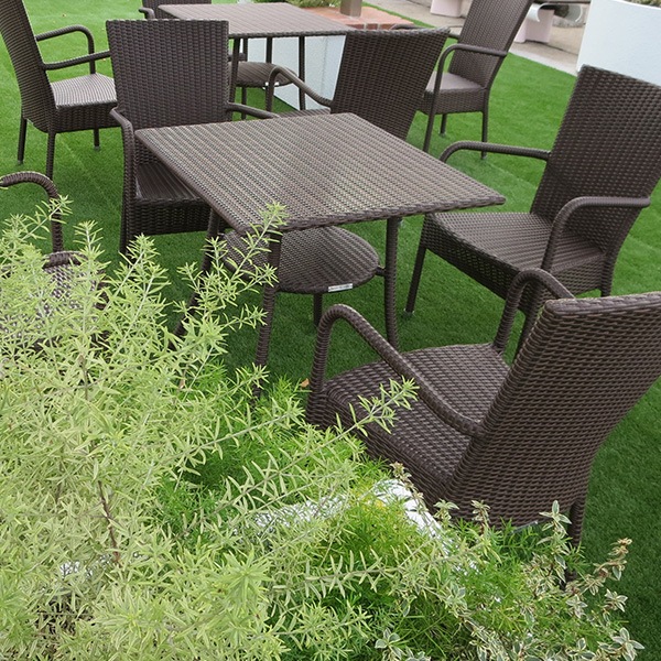 南国の感覚あふれるガーデンファニチャードイツの【REHAU(レーハウ)社】が企画、自社工場にて製造した「RAUCORD」と呼ばれるHDPE(高密度ポリエチレン)を丁寧に手編により、自然な風合い・高級感・温かさを併せ持っています。お手入れ簡単&環境に優しい素材の屋外用家具。