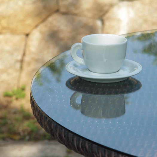 一般的に出回っている安価な「籘編み風ガーデンファニチャー」はPVC(=塩ビ)製で耐用温度は約60℃。アツアツ淹れたてのコーヒーカップの底は90℃近くなってしまいます。その点、ドイツREHAU(レーハウ)社の「ラウコード(=ポリエチレン))の耐用温度は130℃~マイナス70℃。自然な風合いも魅力ですが、機能的にも安心してお使いいただけます。また、塩ビは燃やすと有毒ガスが発生しますが、ラウコードは高温で燃やすと有毒ガスがでませんし、リサイクル可能な地球思いの素材です。