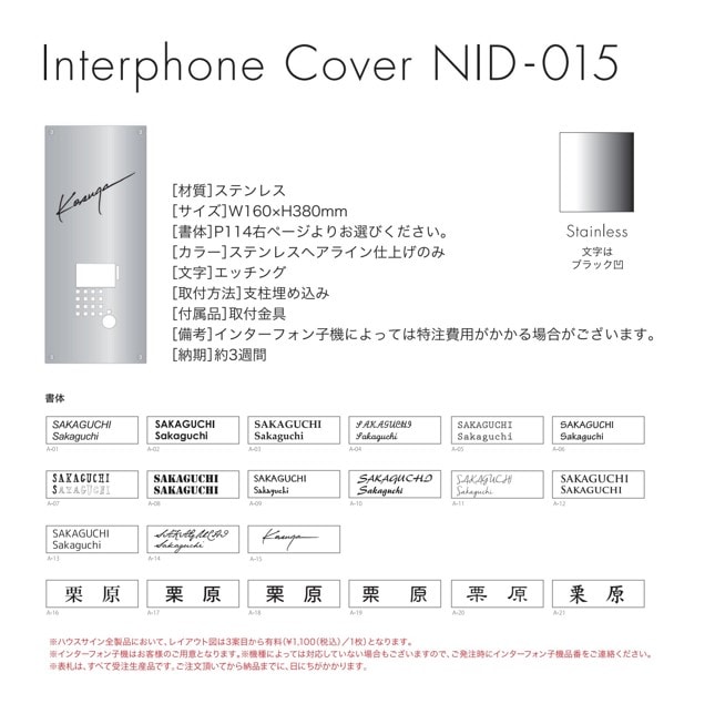Interphone Cover [インターフォンカバー] NID-015