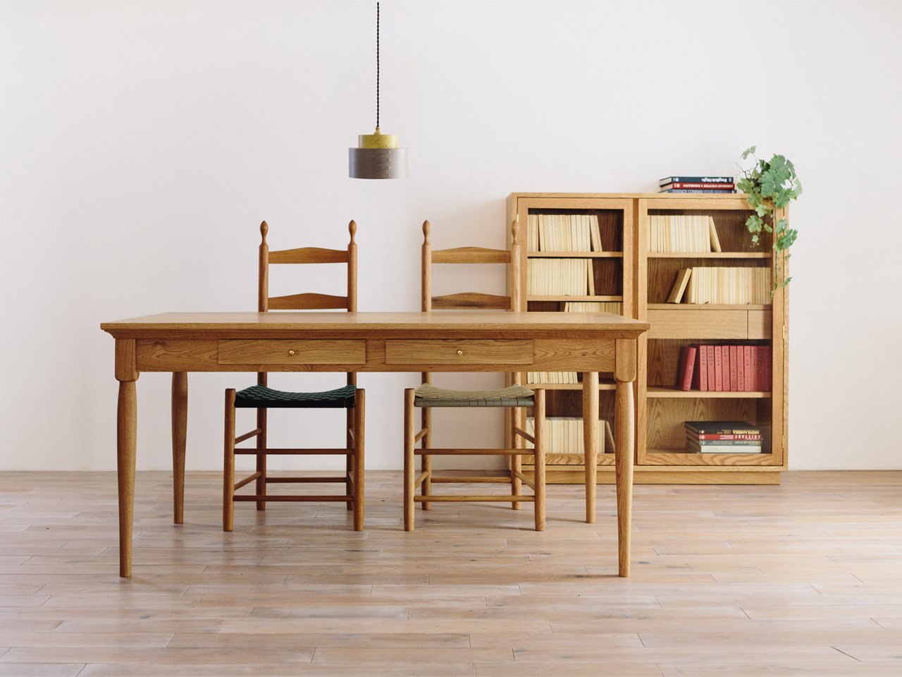 引出し付のダイニングテーブルです。引出しツマミの真鍮がポイントの温かみのあるテーブルです。