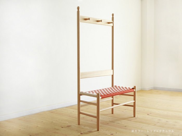 洋服や小物が掛けられるハンガーが便利なシェーカースタイルのキッズチェアです