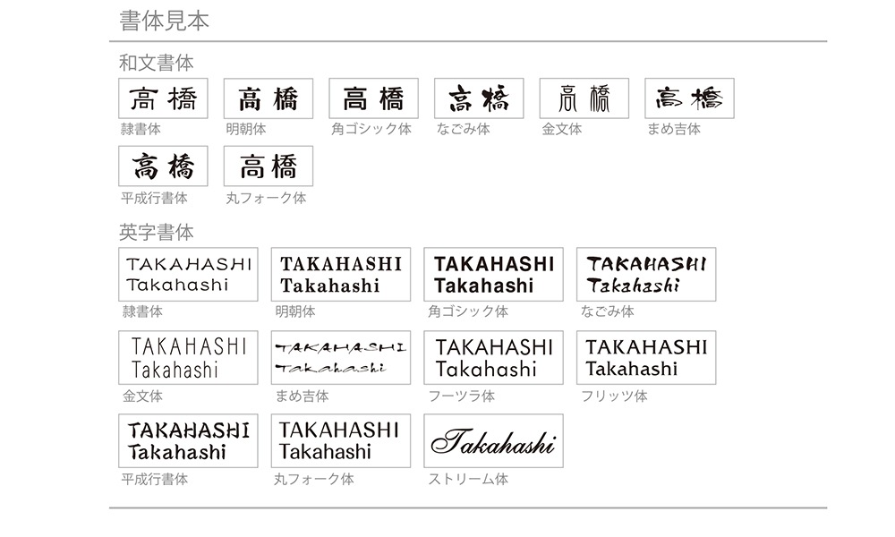 | 書体 | お選び下さい。 |