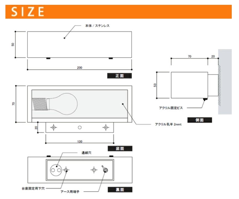 装飾や凝った形状もなく、必要最小限の機能に絞って設計されたミニマルデザインはどんな環境にも溶け込みます。照明器具はその存在を主張するのではなく、必要な所に必要な光を灯してくれるということが何よりです!ステンレス製の表札やポストをコーディネートされた門柱まわりにおすすめです。スタイリッシュに決まりますよ。汚れがつきにくくお手入れしやすいのもポイント!SPEC INFORMATION