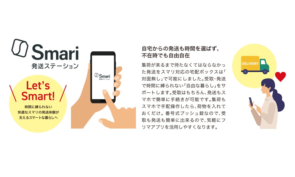 スマリはEC商品、レンタル商品の発送・返品・返却をよりスムーズに行うことができる自宅配送を可能にしたサービスです。伝票記入などの面倒な寺続きも不要なため快適に発送が行えます。