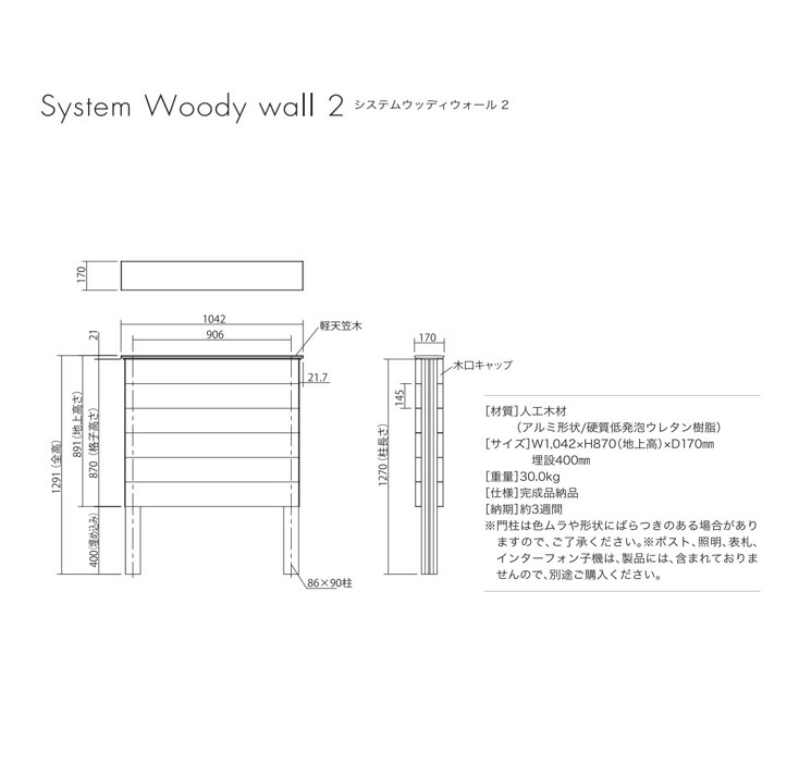 | サイズ | W1042×H870(地上高)×D170 埋設部400含む |