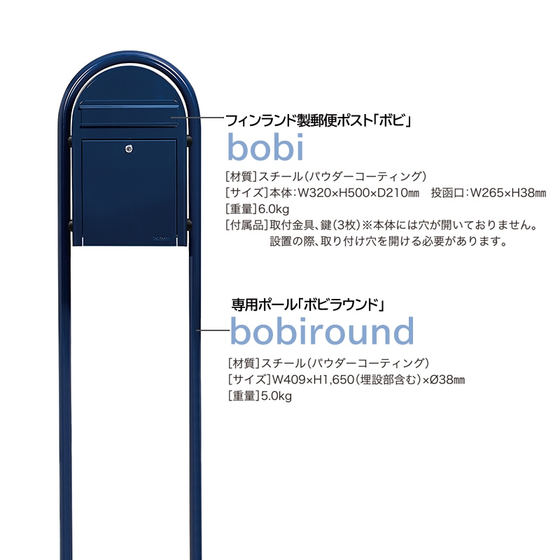 【サイズ】ボビ(本体:W320×H500×D210mm 投函口口:W265×H38mm)、ボビラウンド(Φ38mm W409×H1650mm※埋設部分含む)