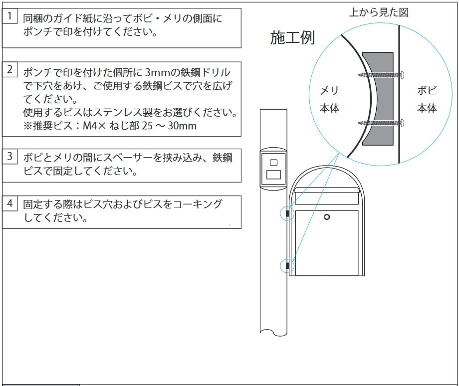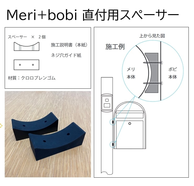 ・機能門柱メリピラリとボビポストが一体化できる「メリボビスペーサー」が付属します。