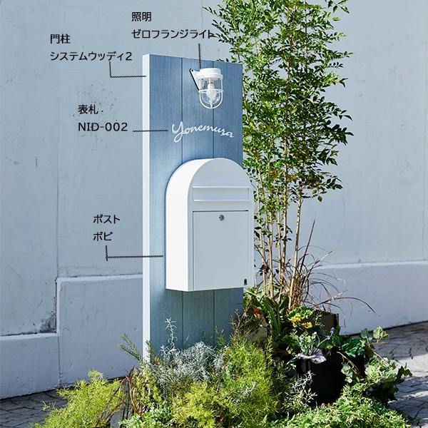 門まわりアイテム4点セット20%オフ|26/3/31納品分まで有効|門柱×照明×ポスト×ネームプレート|システムウッディ2×ゼロフランジライト×ボビ×NID-002