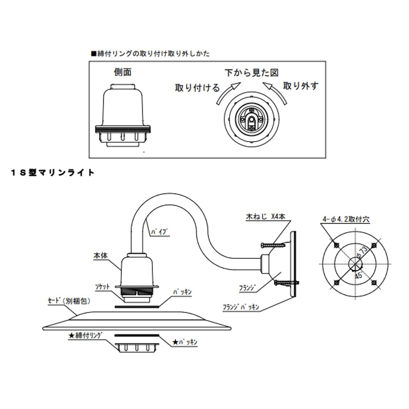 マリンランプ|室内用|1S型マリンライト|ブラケット|ゴールド、シルバー、ブラック|船舶ライト